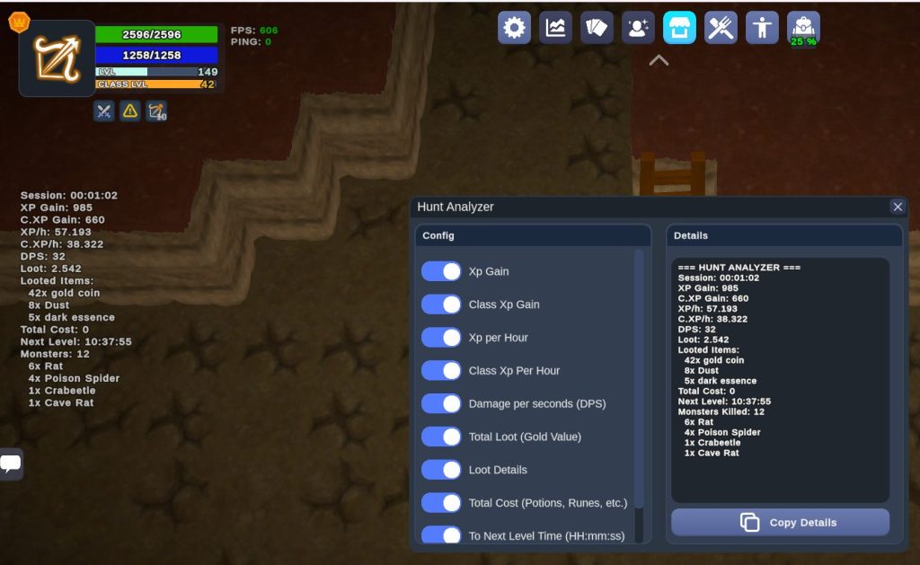 ⚔️ Uso de poções, runas e consumíveis: o jogo agora entende melhor seus gastos em combate, permitindo análises mais completas do custo por hora (CPM) e da eficiência de cada caçada.